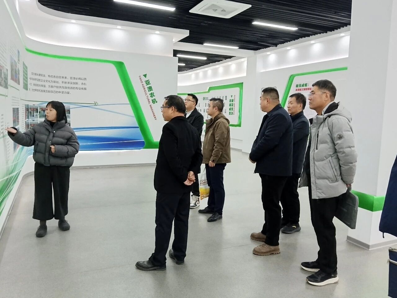 考察團先后走進企業(yè)文化展廳、產(chǎn)品展廳及核心生產(chǎn)線,通過實地觀摩智能農(nóng)機裝配流程、近距離查看新型農(nóng)機裝備性能、現(xiàn)場問詢技術(shù)研發(fā)細(xì)節(jié)等方式,全方位了解企業(yè)在生產(chǎn)制造、技術(shù)創(chuàng)新、文化建設(shè)等方面的發(fā)展成果。